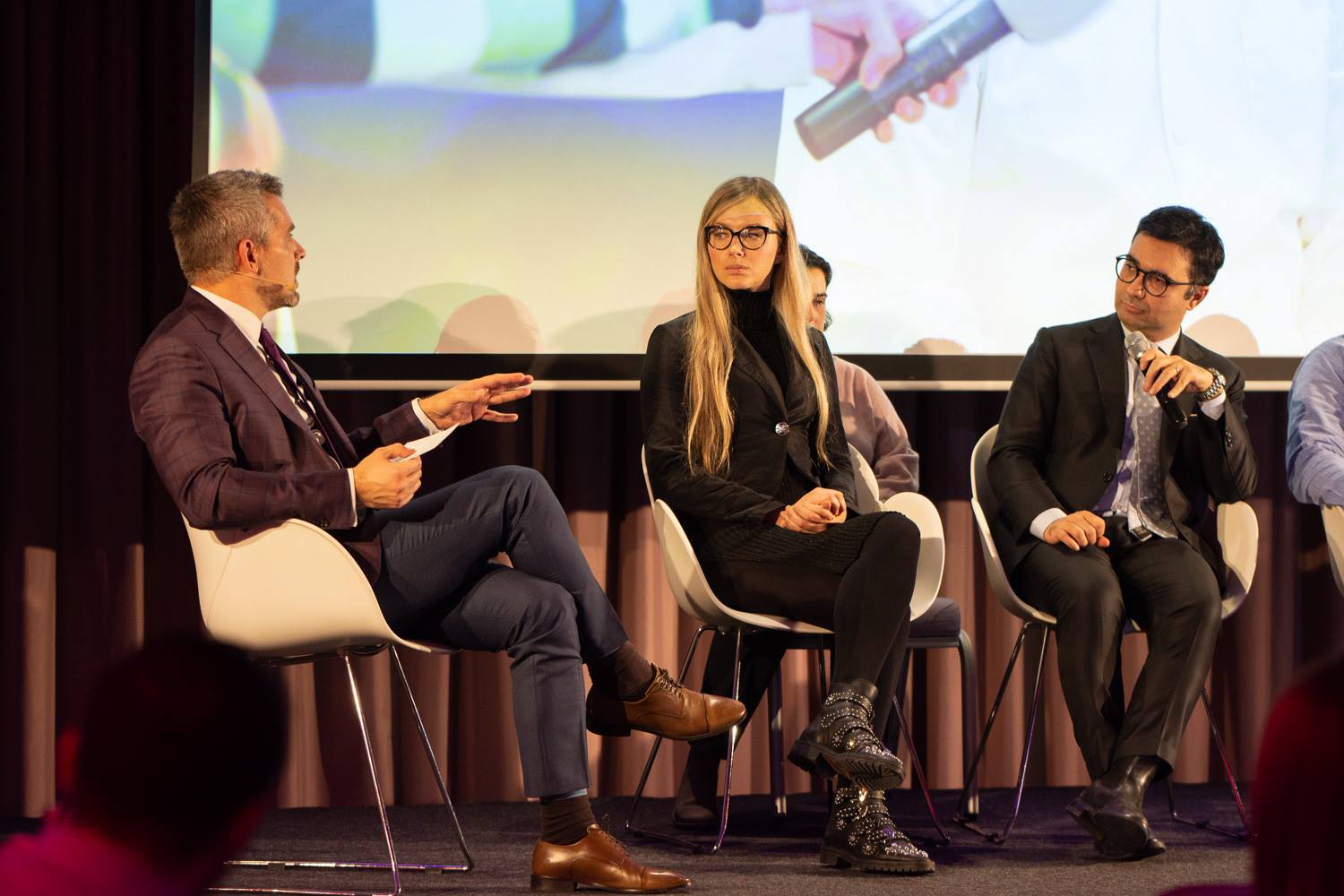 Dr. Bogdan Ivanescu, fondatorul Doctor MIT, in dialog cu chirurgul plastician Anna Fogli si cu inventatorul tehnologiei Rigenera, prof. Antonio Graziani, in timpul lansarii Rigenera in Romania, anul 2018. Tehnologia Rigenera este indicata ca si terapie pentru coxartroza (artroza de sold), gonartroza (artroza de genunchi), artroza de glezna, de umar si de orice alta articulatie unde poate ajunge medicul in scopul injectarii concentratului.